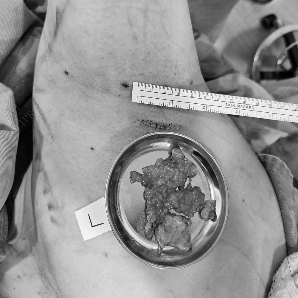 透過顯微套管抽脂技術、副乳手術取出乳腺的傷口盡量小,且隱藏在腋下縐摺處: