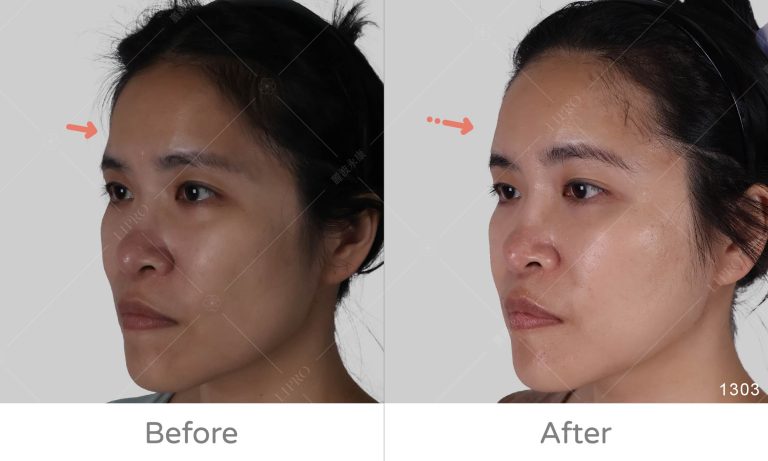 2.調整額頭額角的高度也能影響額頭的視覺效果,使用填充物如:脂肪,略微抬高額頭中點,可以讓額頭視覺上感覺較高。