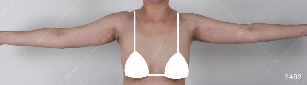 說明:此個案只有做副乳部分,術後整體體重增加,不過原本突出的副乳皮膚在沒有切皮的條件下,單靠顯微套管抽脂技術可以達到皮膚收縮的效果,傷口就是一個小洞洞而已。